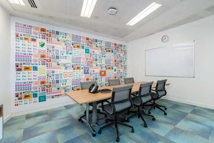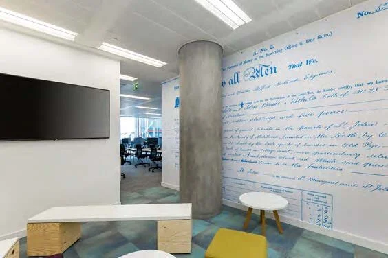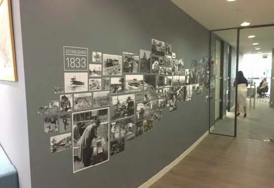 The design concept I created for the office walls drew from the unique 185 year history of Crown Agents and their strong supply chain work. I developed designs that enhance the work space and showcase elements from Crown Agents’ past.